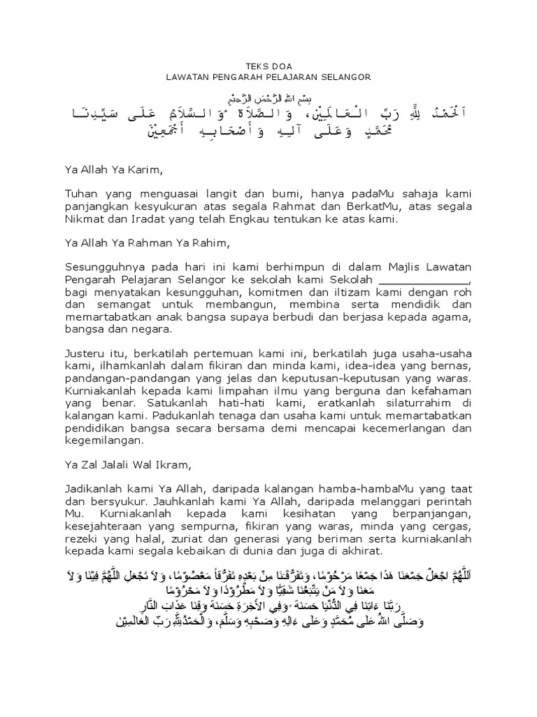 Teks Doa Lawatan Pengarah Pdf